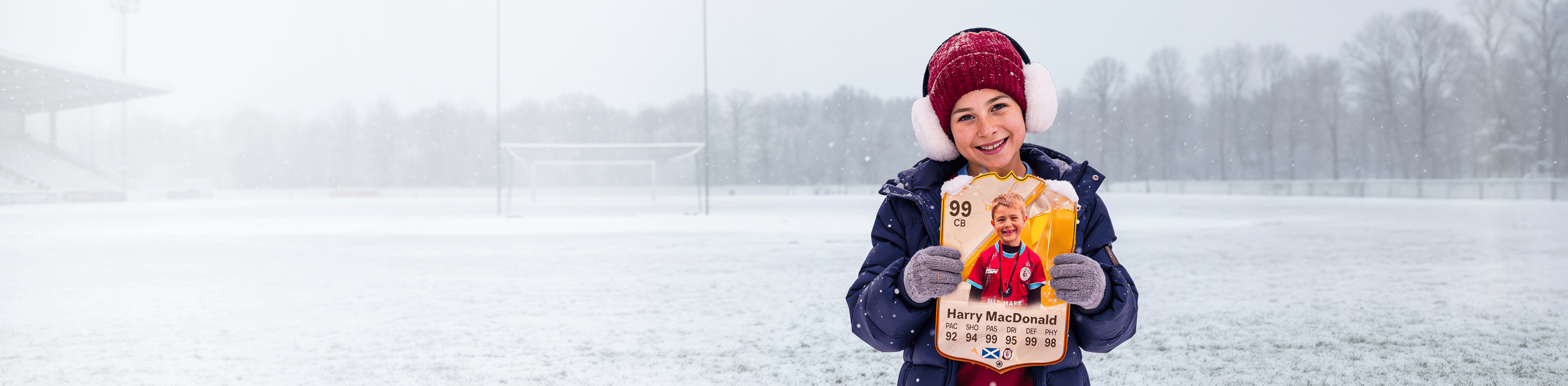 Add your own photo, name, club, and stats with our easy online tool. Our expert designers will do the rest!