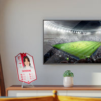 Our football card builder lets you choose between two different card materials. Our Standard cards are made of a ultra-strong variety of Foamex (not cardboard or foam!). This material has a lovely gloss finish and is also super durable. Our world-exclusive Metal football cards have a matte finish and are slightly heavier. Both look amazing and will last forever.