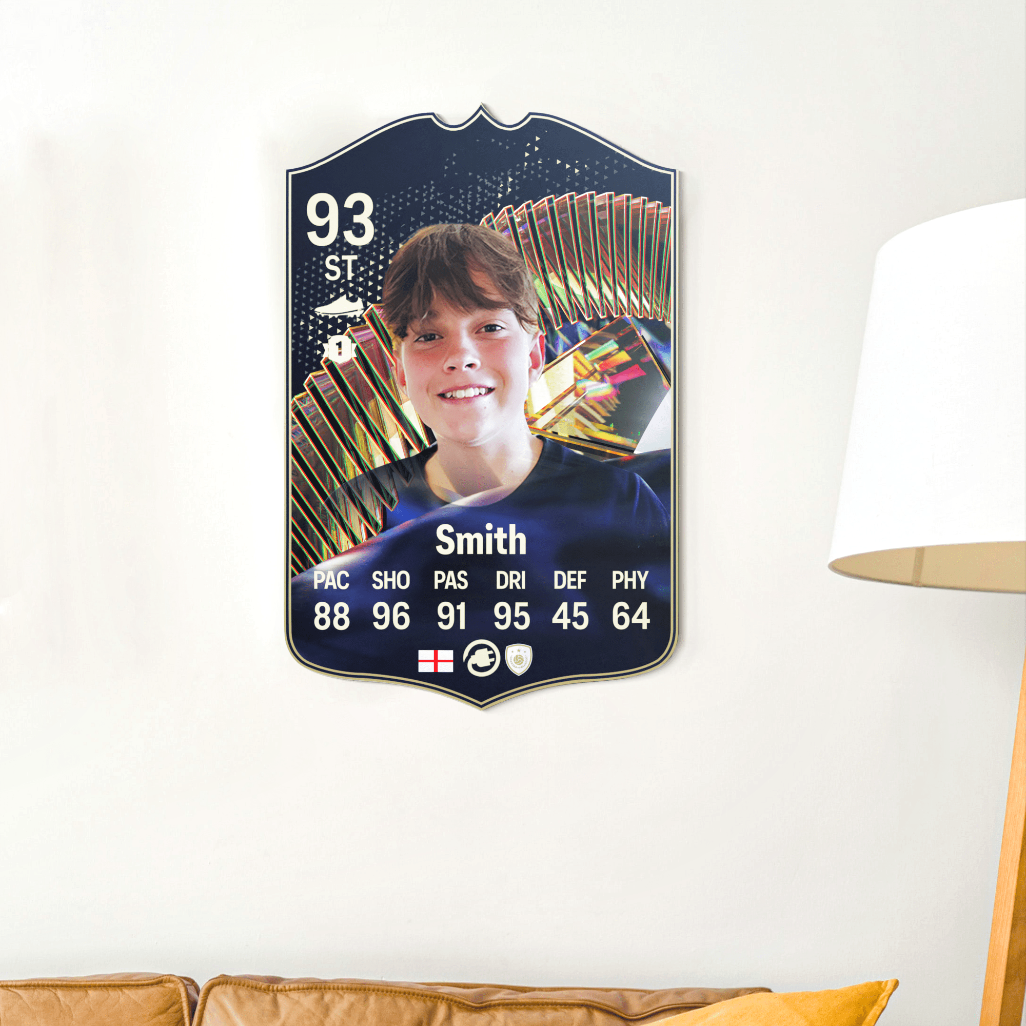 CardsPlug is home to the world’s favourite personalised football cards. Our easy football card builder lets you make a real life football card with your own name, photo, and skill ratings. With 100+ designs to choose from and some inspired by EA SPORTS FC 26 cards seen in EA FC 26, EA FC 25 and FC 24 as well as FIFA cards seen in games like FIFA 23 and FIFA 22.
