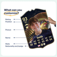 When it comes to personalising your card, the basic steps are to upload a photo and add a name to your card. Then you’ll add details like your player’s position and skill ratings out of 99 for each football skill shown on the card. Our online card builder makes this really easy. And if you aren’t a football card expert, don’t worry!