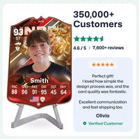 Yes! Our football card designers will remove the background from the photo you upload so it looks just like the football cards you might’ve seen games like EA FC 25, EA FC 24 or FIFA. We’ll also position the photo perfectly on the football card so it looks great. If there are any problems with the quality of your photo, we’ll reach out and let you know. Plus, our website's AI will remove the background on the image for visual purposes before purchase so you can see it without a background on the card.