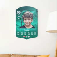 Our football card builder lets you choose between two different card materials. Our Standard cards are made of a ultra-strong variety of Foamex (not cardboard or foam!). This material has a lovely gloss finish and is also super durable. Our world-exclusive Metal football cards have a matte finish and are slightly heavier. Both look amazing and will last forever.