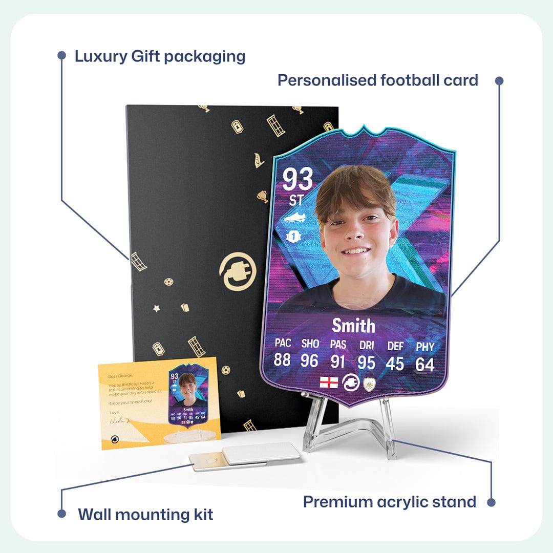 CardsPlug is home to the world’s favourite personalised football cards. Our easy football card builder lets you make a real life football card with your own name, photo, and skill ratings. With 100+ designs to choose from and some inspired by EA SPORTS FC 26 cards seen in EA FC 26, EA FC 25 and FC 24 as well as FIFA cards seen in games like FIFA 23 and FIFA 22.