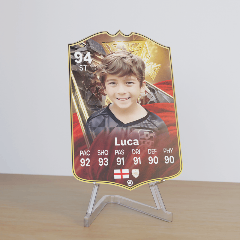 Yes! Our football card designers will remove the background from the photo you upload so it looks just like the football cards you might’ve seen games like EA FC 25, EA FC 24 or FIFA. We’ll also position the photo perfectly on the football card so it looks great. If there are any problems with the quality of your photo, we’ll reach out and let you know. Plus, our website's AI will remove the background on the image for visual purposes before purchase so you can see it without a background on the card.
