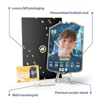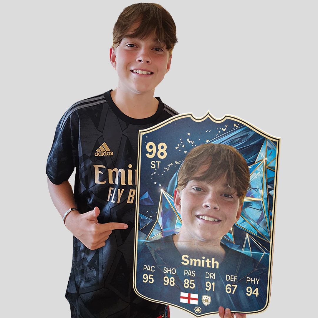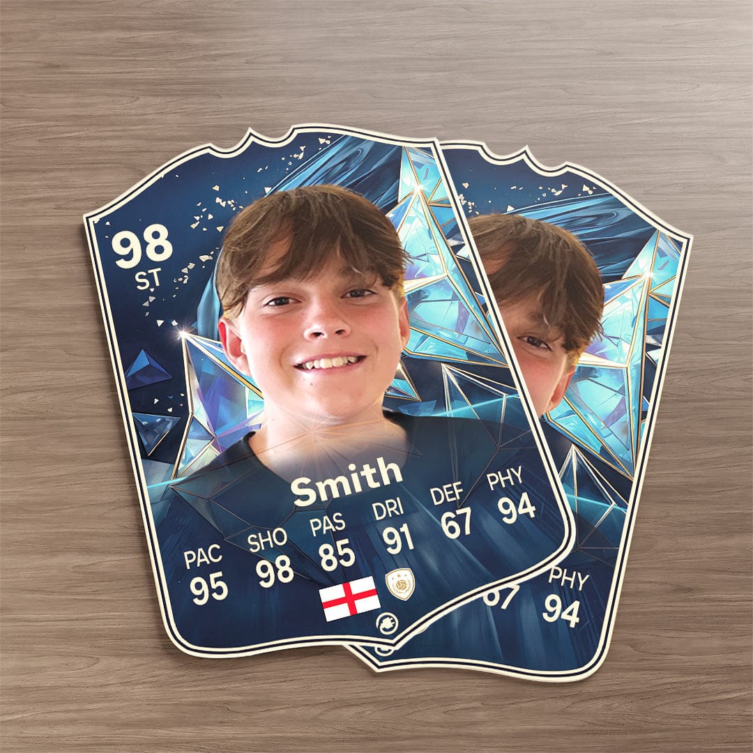 CardsPlug is home to the world’s favourite personalised football cards. Our easy football card builder lets you make a real life football card with your own name, photo, and skill ratings. With 100+ designs to choose from and some inspired by EA SPORTS FC 26 cards seen in EA FC 26, EA FC 25 and FC 24 as well as FIFA cards seen in games like FIFA 23 and FIFA 22.