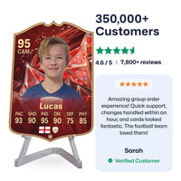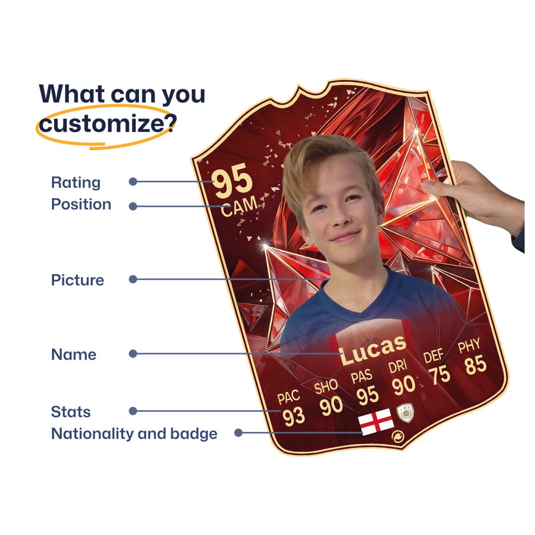 Yes! Our football card designers will remove the background from the photo you upload so it looks just like the football cards you might’ve seen games like EA FC 25, EA FC 24 or FIFA. We’ll also position the photo perfectly on the football card so it looks great. If there are any problems with the quality of your photo, we’ll reach out and let you know. Plus, our website's AI will remove the background on the image for visual purposes before purchase so you can see it without a background on the card.