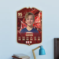 Our football card builder lets you choose between two different card materials. Our Standard cards are made of a ultra-strong variety of Foamex (not cardboard or foam!). This material has a lovely gloss finish and is also super durable. Our world-exclusive Metal football cards have a matte finish and are slightly heavier. Both look amazing and will last forever.