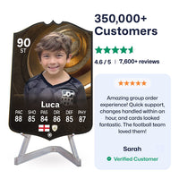 Yes! Our football card designers will remove the background from the photo you upload so it looks just like the football cards you might’ve seen games like EA FC 25, EA FC 24 or FIFA. We’ll also position the photo perfectly on the football card so it looks great. If there are any problems with the quality of your photo, we’ll reach out and let you know. Plus, our website's AI will remove the background on the image for visual purposes before purchase so you can see it without a background on the card.