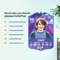 CardsPlug is home to the world’s favourite personalised football cards. Our easy football card builder lets you make a real life football card with your own name, photo, and skill ratings. With 100+ designs to choose from and some inspired by EA SPORTS FC 26 cards seen in EA FC 26, EA FC 25 and FC 24 as well as FIFA cards seen in games like FIFA 23 and FIFA 22.