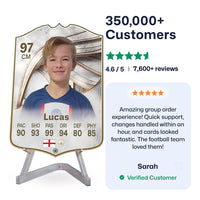 Yes! Our football card designers will remove the background from the photo you upload so it looks just like the football cards you might’ve seen games like EA FC 25, EA FC 24 or FIFA. We’ll also position the photo perfectly on the football card so it looks great. If there are any problems with the quality of your photo, we’ll reach out and let you know. Plus, our website's AI will remove the background on the image for visual purposes before purchase so you can see it without a background on the card.
