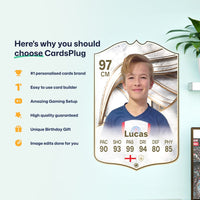 CardsPlug is home to the world’s favourite personalised football cards. Our easy football card builder lets you make a real life football card with your own name, photo, and skill ratings. With 100+ designs to choose from and some inspired by EA SPORTS FC 26 cards seen in EA FC 26, EA FC 25 and FC 24 as well as FIFA cards seen in games like FIFA 23 and FIFA 22.