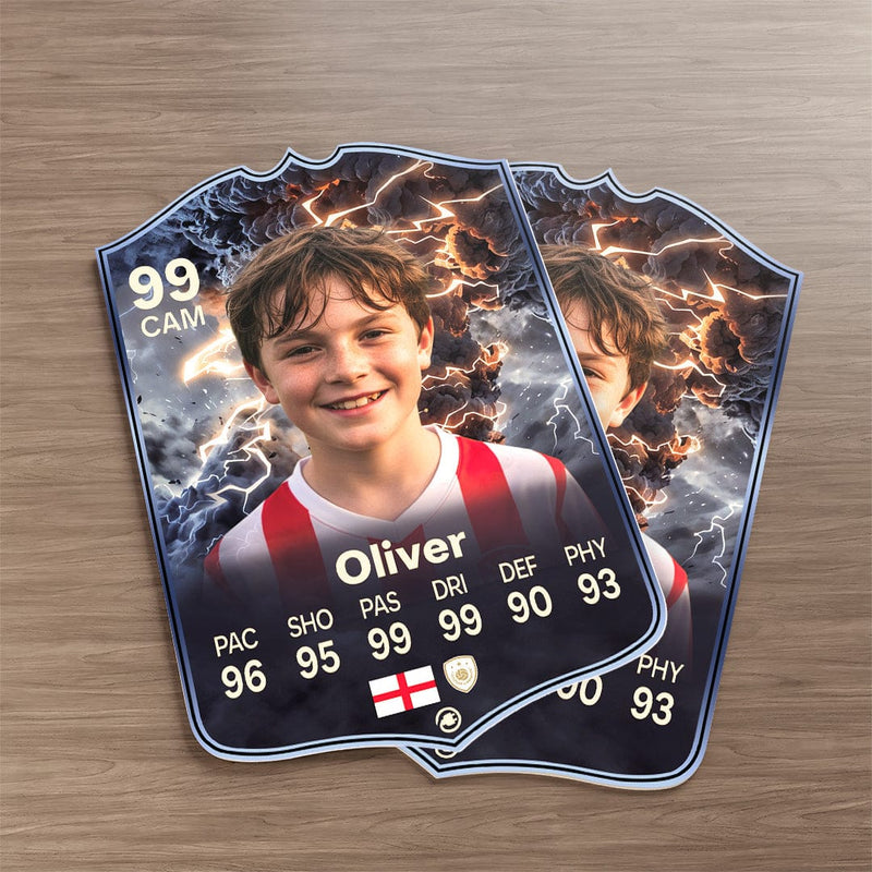 CardsPlug is home to the world’s favourite personalised football cards. Our easy football card builder lets you make a real life football card with your own name, photo, and skill ratings. With 100+ designs to choose from and some inspired by EA SPORTS FC 26 cards seen in EA FC 26, EA FC 25 and FC 24 as well as FIFA cards seen in games like FIFA 23 and FIFA 22.