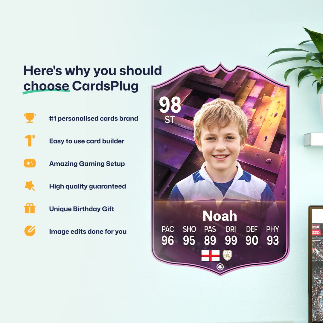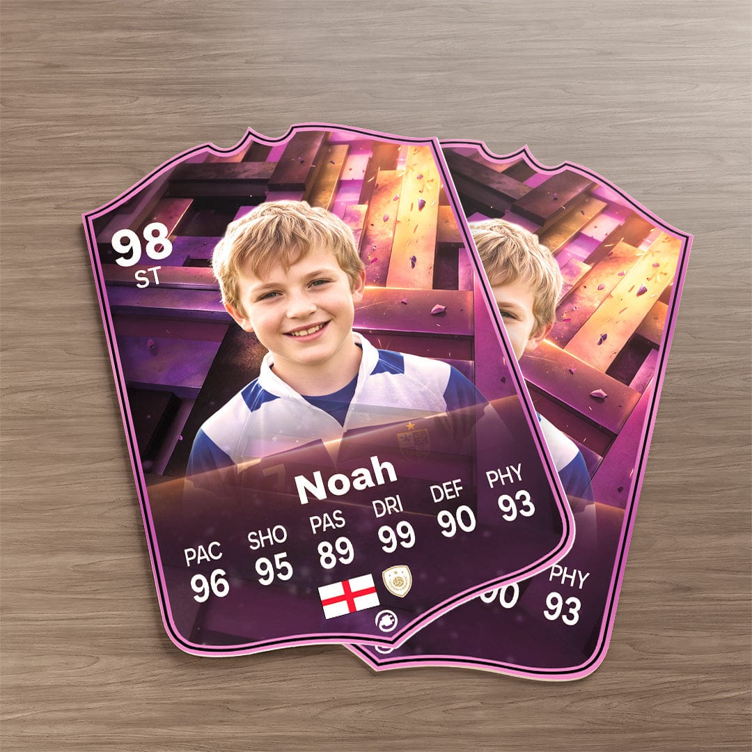 CardsPlug is home to the world’s favourite personalised football cards. Our easy football card builder lets you make a real life football card with your own name, photo, and skill ratings. With 100+ designs to choose from and some inspired by EA SPORTS FC 26 cards seen in EA FC 26, EA FC 25 and FC 24 as well as FIFA cards seen in games like FIFA 23 and FIFA 22.