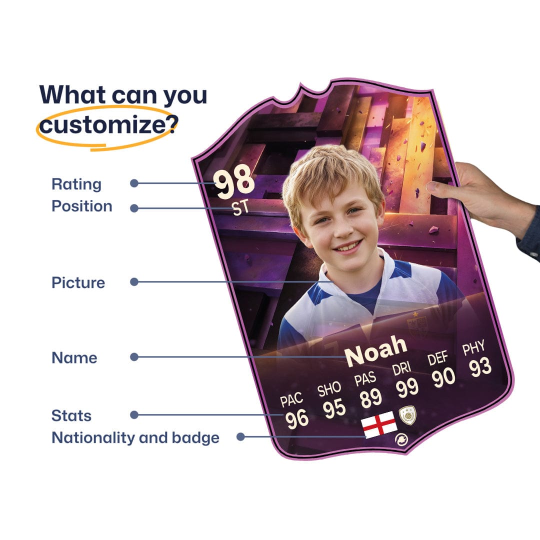 Yes! Our football card designers will remove the background from the photo you upload so it looks just like the football cards you might’ve seen games like EA FC 25, EA FC 24 or FIFA. We’ll also position the photo perfectly on the football card so it looks great. If there are any problems with the quality of your photo, we’ll reach out and let you know. Plus, our website's AI will remove the background on the image for visual purposes before purchase so you can see it without a background on the card.