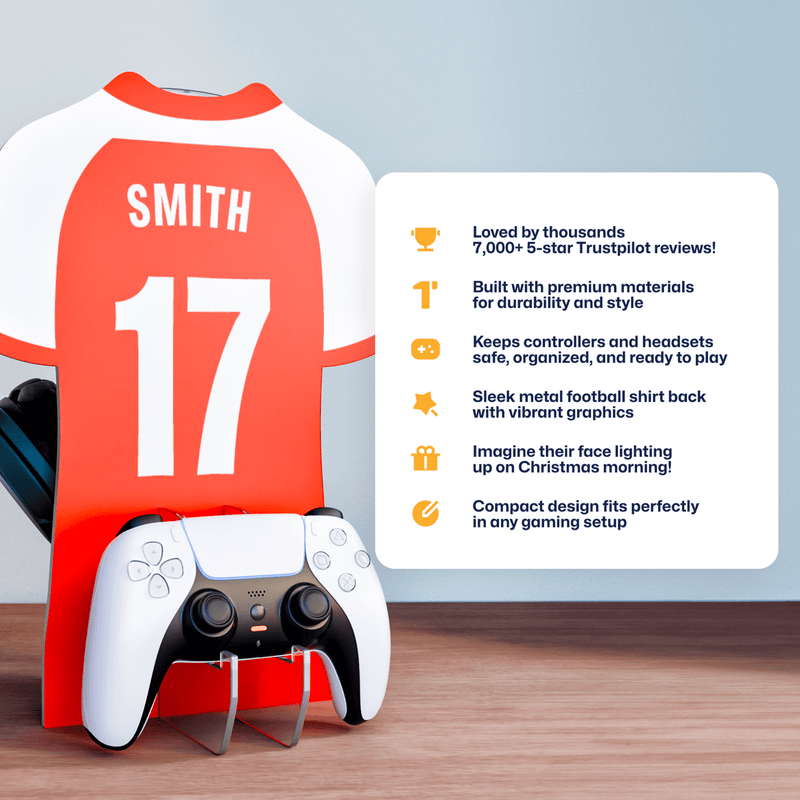 CardsPlug, home to the world’s favorite personalized football cards, now brings you the ultimate personalized gaming station! With our easy-to-use gaming station builder, you can customize your setup by choosing your favorite team’s shirt colors or even creating your own unique design.