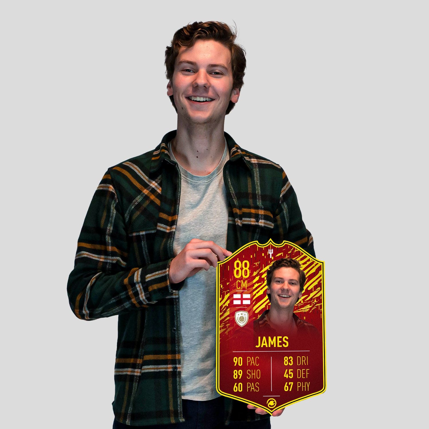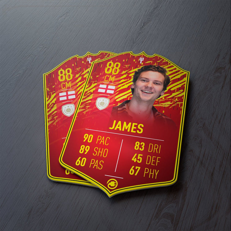 When it comes to personalising your card, the basic steps are to upload a photo and add a name to your card. Then you’ll add details like your player’s position and skill ratings out of 99 for each football skill shown on the card. Our online card builder makes this really easy. And if you aren’t a football card expert, don’t worry!