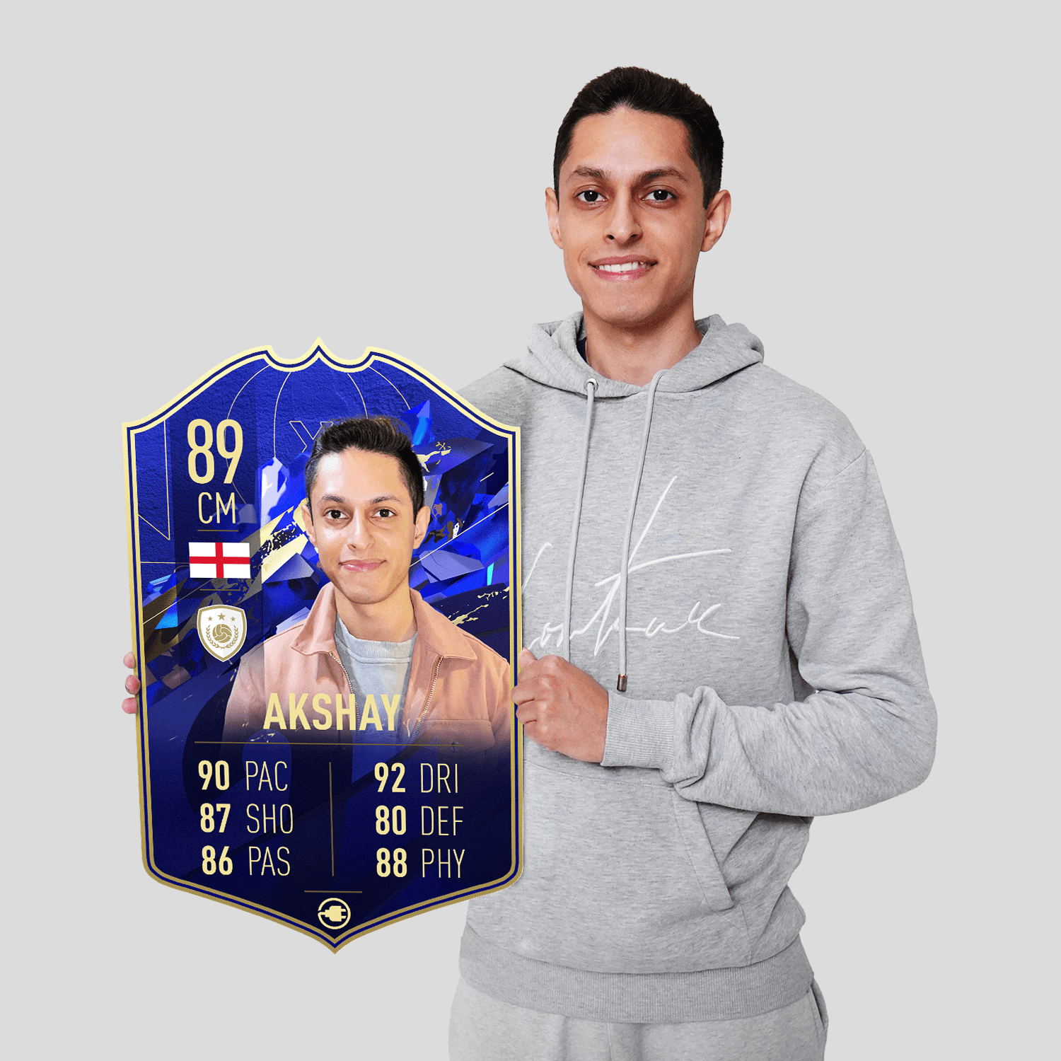 Yes! Our football card designers will remove the background from the photo you upload so it looks just like the football cards you might’ve seen games like EA FC 25, EA FC 24 or FIFA. We’ll also position the photo perfectly on the football card so it looks great. If there are any problems with the quality of your photo, we’ll reach out and let you know. Plus, our website's AI will remove the background on the image for visual purposes before purchase so you can see it without a background on the card.