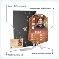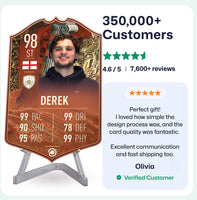 Yes! Our football card designers will remove the background from the photo you upload so it looks just like the football cards you might’ve seen games like EA FC 25, EA FC 24 or FIFA. We’ll also position the photo perfectly on the football card so it looks great. If there are any problems with the quality of your photo, we’ll reach out and let you know. Plus, our website's AI will remove the background on the image for visual purposes before purchase so you can see it without a background on the card.