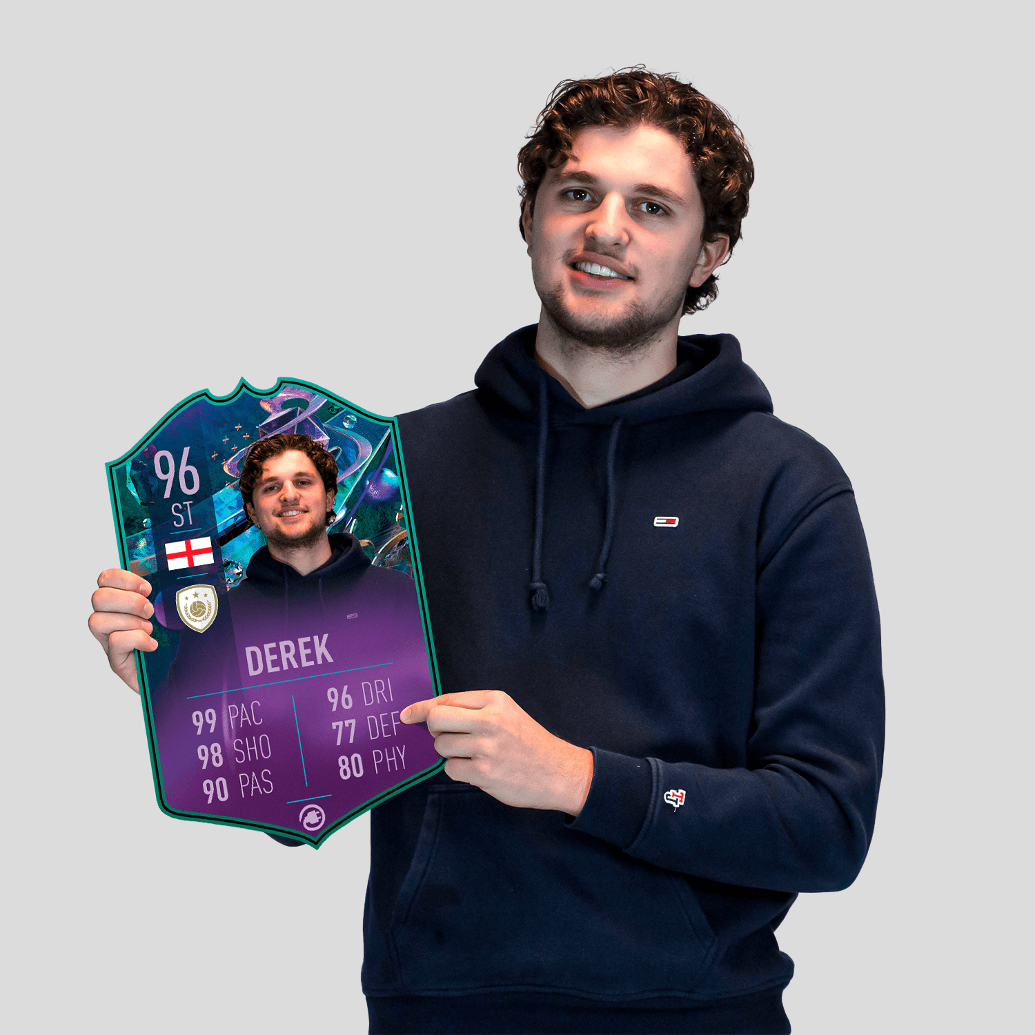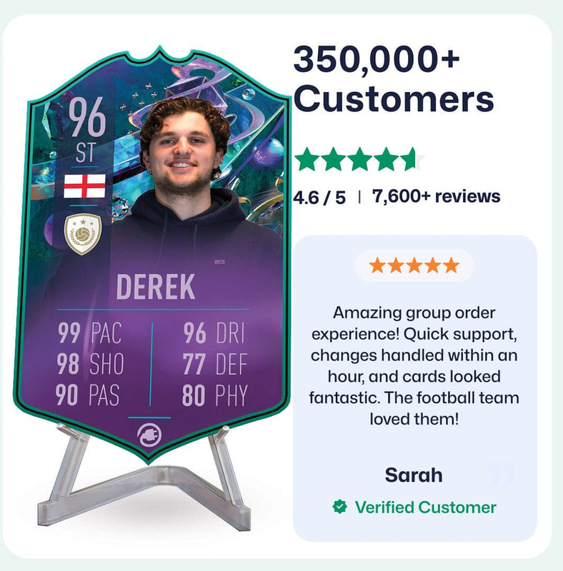 Yes! Our football card designers will remove the background from the photo you upload so it looks just like the football cards you might’ve seen games like EA FC 25, EA FC 24 or FIFA. We’ll also position the photo perfectly on the football card so it looks great. If there are any problems with the quality of your photo, we’ll reach out and let you know. Plus, our website's AI will remove the background on the image for visual purposes before purchase so you can see it without a background on the card.