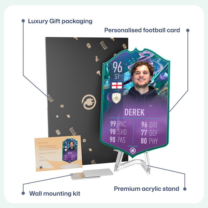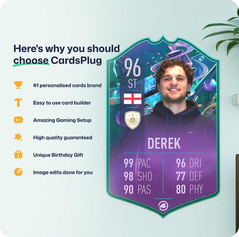 CardsPlug is home to the world’s favourite personalised football cards. Our easy football card builder lets you make a real life football card with your own name, photo, and skill ratings. With 100+ designs to choose from and some inspired by EA SPORTS FC 26 cards seen in EA FC 26, EA FC 25 and FC 24 as well as FIFA cards seen in games like FIFA 23 and FIFA 22.