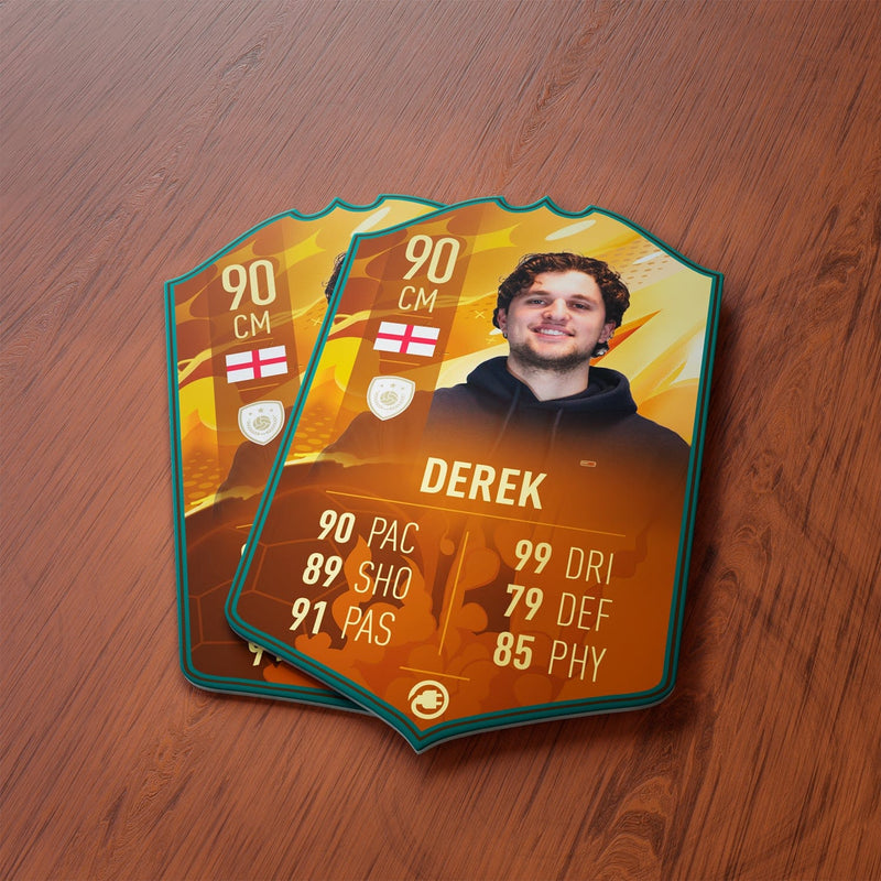 CardsPlug is home to the world’s favourite personalised football cards. Our easy football card builder lets you make a real life football card with your own name, photo, and skill ratings. With 100+ designs to choose from and some inspired by EA SPORTS FC 26 cards seen in EA FC 26, EA FC 25 and FC 24 as well as FIFA cards seen in games like FIFA 23 and FIFA 22.