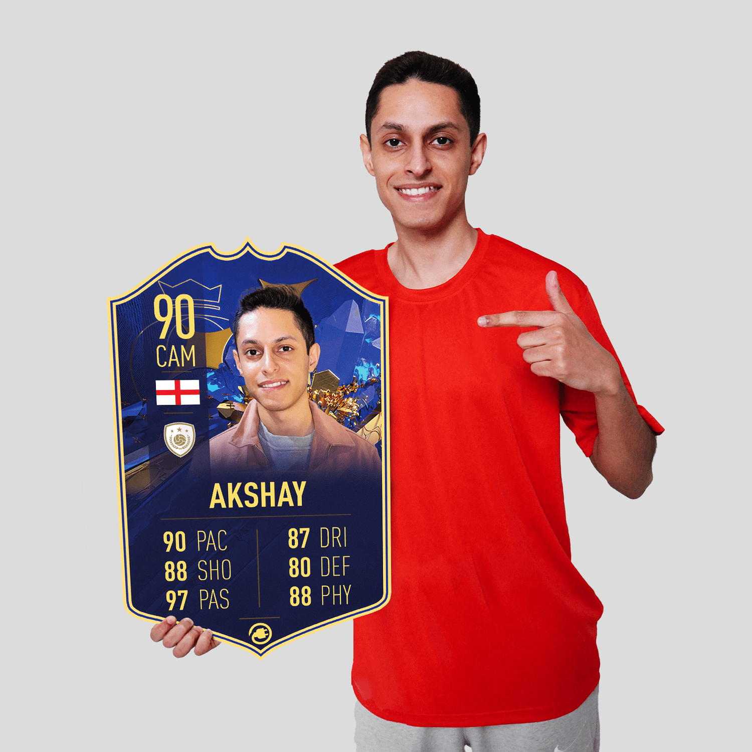 CardsPlug is home to the world’s favourite personalised football cards. Our easy football card builder lets you make a real life football card with your own name, photo, and skill ratings. With 100+ designs to choose from and some inspired by EA SPORTS FC 26 cards seen in EA FC 26, EA FC 25 and FC 24 as well as FIFA cards seen in games like FIFA 23 and FIFA 22.